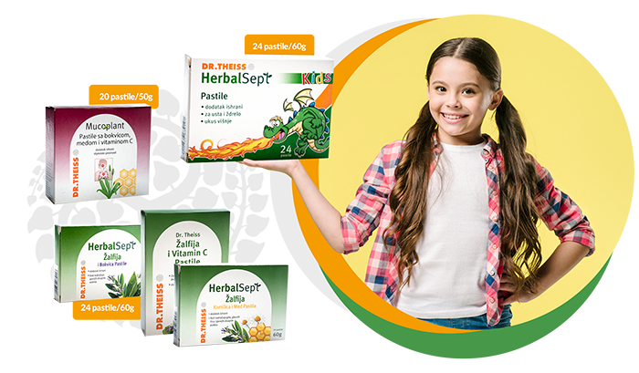 pa stoga nešto što je nadodato Mucoplant liniji su Dr Theiss pastile, koje postoje u nekoliko formi: sa žalfijom, vitaminom C, sa bokvicom, sa kamilicom i vitaminom C.