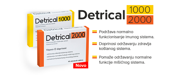još jedan od relativno noviih preparata DETRICAL koji sadrži vitarnin D3 sa hiljadu internacionalnih jedinica vitarnina D po jednoj tableti.